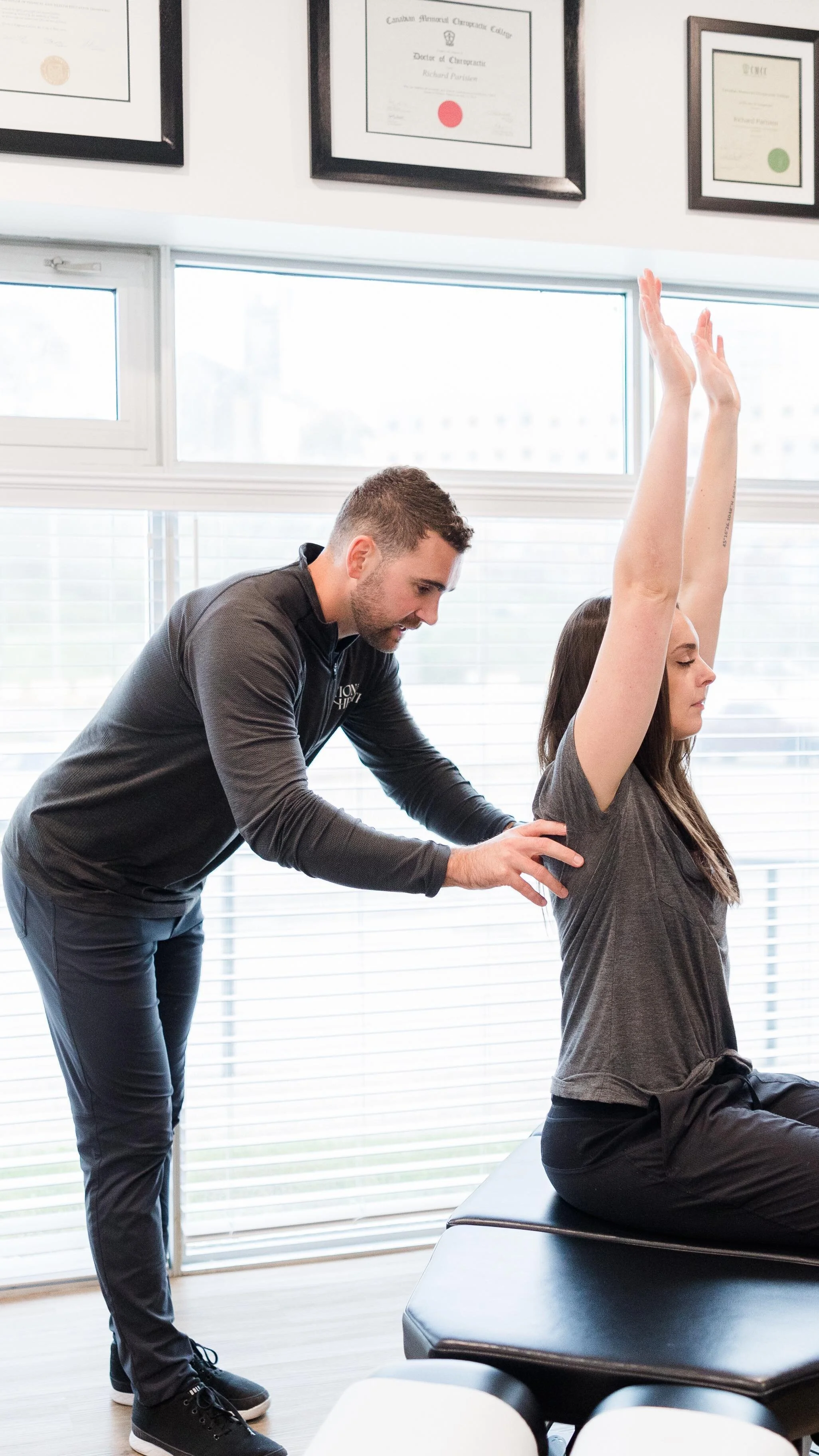 Once your initial visit is booked, you can access the intake forms via the online booking app, Jane, which will prompt you to do so via email. Alternatively, the intake forms can be completed in the clinic. We recommend you arrive 5 minutes early for your appointment to do so. Please wear comfortable clothing and if necessary, bring a pair of shorts or change of clothes that allows the area of focus to be properly assessed and to allow for any potential exercise. Finally, bring any extended health benefit information you may have for direct billing, test reports, physician referrals or medical documentation if necessary.
